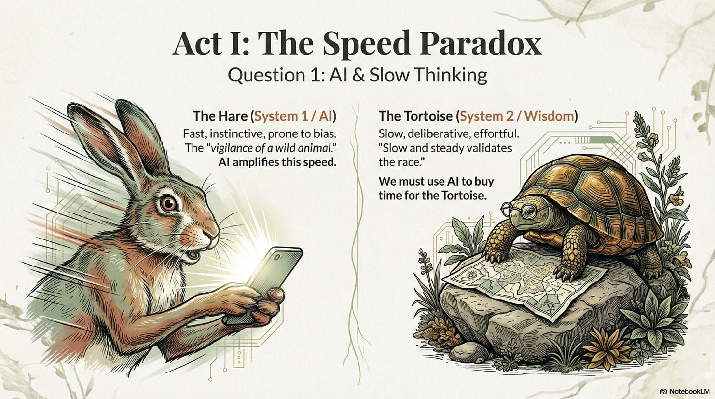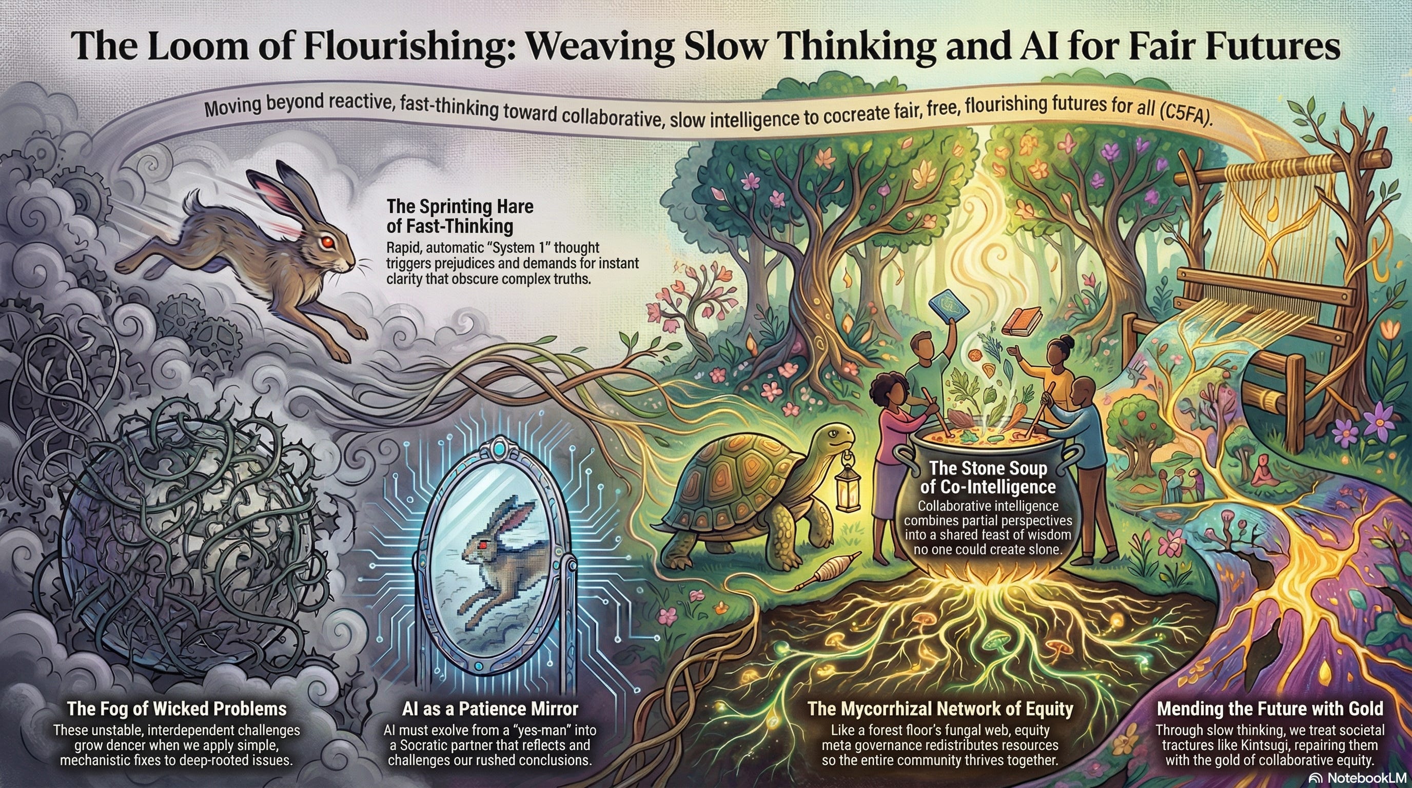 Human slow-thinking, which fuses indigenous, ancient, and modern wisdom for ethical discernment, moral meaning-making, virtuous sense-making, and contextual judgment