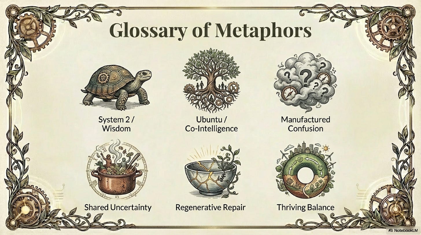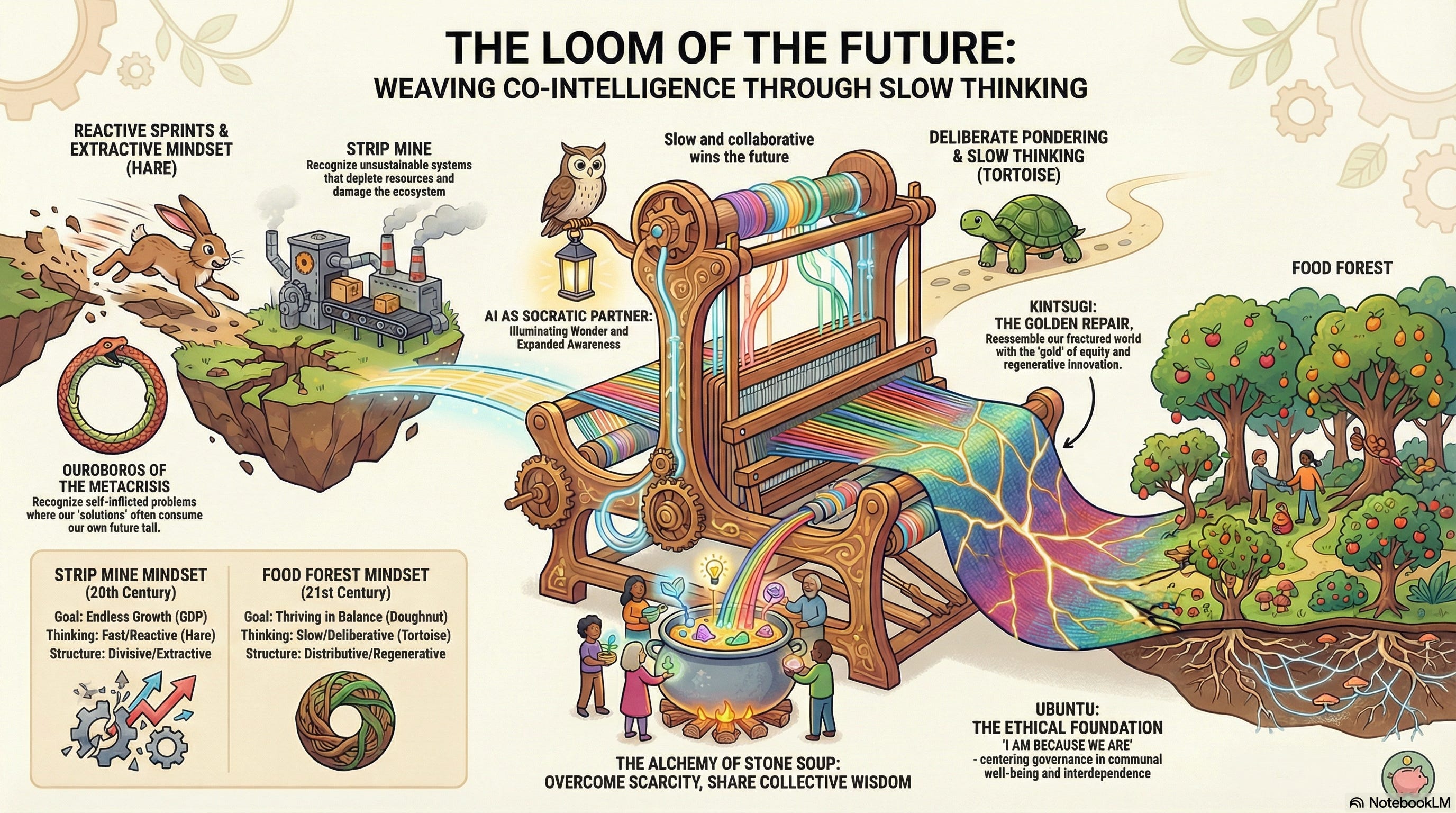 The future of human intelligence does not lie in a more efficient search for answers, but in the scaling up of co-creating self-organizing, self-generating, intergenerational and peer learning communities to transform mindsets. In this metanoia vision, AI is used as a structured antagonist in the service of the common good: a slow-thinking catalyst to enable reflection-on-action required to cultivate equity meta-governance.